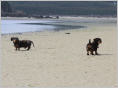 Nach einer Runde mit den Dackeln haben wir uns für 1-2 Stündchen an den Strand gelegt und haben uns in die Fluten gestürzt, die dann nachmittags langsam kamen, nachdem vormittags/mittags Ebbe war.
