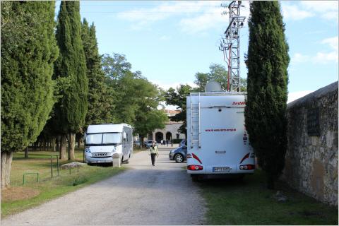 Nach dem Frühstück ging es dann wie geplant nach Burgos. Wir hatten überlegt, ob wir in der Stadt gegen Gebühr parken sollen und uns anschließend einen Stellplatz aussuchen sollen, haben uns dann aber anders entschieden, und sind noch 4 km weiter östlich gefahren zur Cartuja de Miraflores, einem Kloster. Hier stehen wir mit direktem Blick auf die Klosterkirche kostenlos für die Nacht.