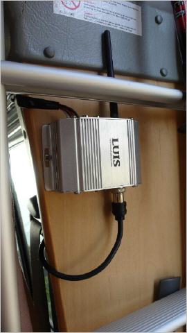 Und ruck zuck war die Übertragungsbox montiert und hatte Strom. Sie hat ihren Platz neben der Aufbautür gefunden, dierkt hinter der Alkovenleiter. Ich bin an der EBL an den gleichen Anschluss dran, an dem auch die Alarmanlage hängt, also haben wir nicht nur Strom für die Rückfahrkamera, wenn 12 Volt eingeschaltet ist, sondern immer.