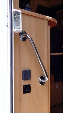 Das Womo steht die meiste Zeit im Hof, nur ab und zu nutze ich es für den Weg zur Arbeit, wenn das Wetter für Radfahren zu schlecht ist, und da wir in Deutschland sind, ist das leider manchmal der Fall. Verändert hat sich das Womo kaum, außer das wir jetzt den Badewannengriff montiert haben…natürlich nicht an der Badewanne, die wir im Womo nicht haben, sondern als Einstiegshilfe als Alternative zur Security Pro 46. Eine Türsicherung mit einem vernünftigen Schloss nehmen wir dann später evtl. in Angriff.