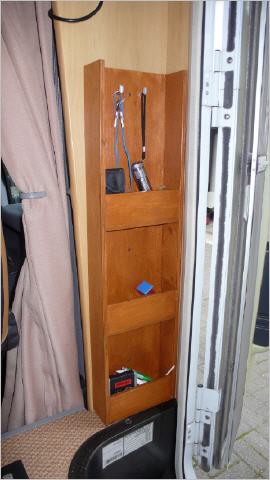 An einem Regentag habe ich letztens ein kleines Regal gebastelt aus einer Birke-Sperrholzplatte, und das Regal auch bereits montiert. Hier ist Platz für Schlüssel, Messer, Stifte, Zigaretten, Feuerzeuge etc.